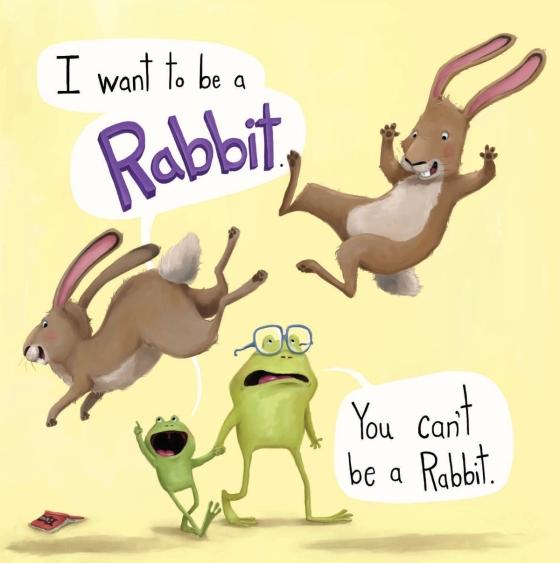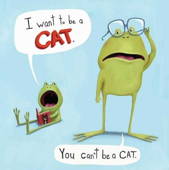 Frog wants to be anything but a slimy, wet frog. A cat, perhaps. Or a rabbit. An owl? But when a hungry wolf arrives—a wolf who HATES eating frogs—our hero decides that being himself isn’t so bad after all. In this very silly story with a sly message, told in hilarious dialogue between a feisty young frog and his heard-it-all-before father, young readers will identify with little Frog’s desire to be something different, while laughing along at his stubborn yet endearing schemes to prove himself right.