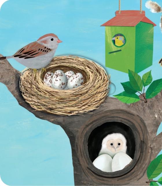 Brilliant blue birds watching over the pale speckled egg in their nest invite readers inside the cover of this nonfiction board book launching the One Little series, which offers a wonder-filled introduction to the world of birds. Designed to spur children’s investigation and protection of the natural world around them, Davies’s upbeat, straightforward text appears across fact-filled lift-the-flap and peek-through pages, offering specifics on variations between different species’ eggs, feathers, nests, and songs, as Pepper keeps pace with an array of crisply detailed collage-style images. Children of various abilities and skin tones appear in spreads providing tips for outdoor activities, including birdhouse building, bird-watching, and feather collecting. It’s a compelling and interactive nudge to get outside and look around. Publishing simultaneously: