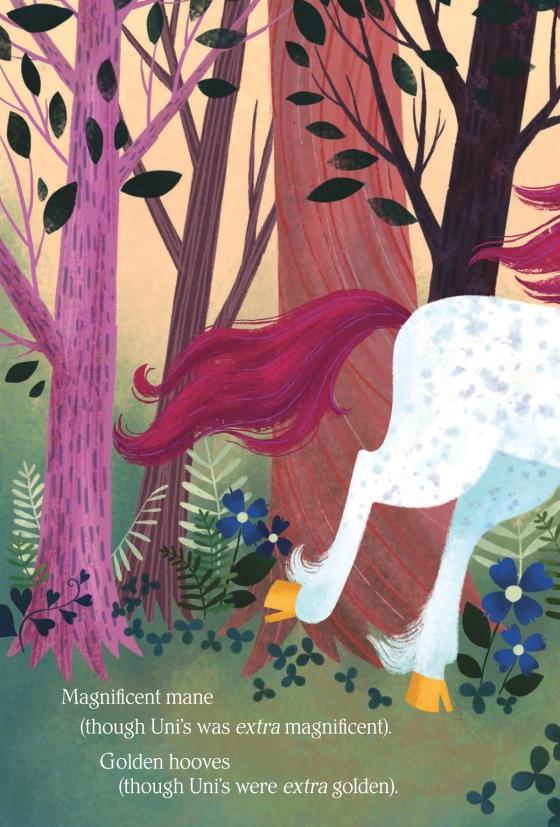 While the spirit of Mary Blair, vintage Golden Books, and 1960s animation influences many contemporary picture books, Barrager (Twelve Dancing Princesses) embraces it fully in this collaboration with Rosenthal (Exclamation Mark). Like her fellow unicorns, Uni is magical and magnificent; she has a luxuriant magenta mane, golden hooves, and violet eyes that don’t just sparkle—they basically are sparkles. Where Uni differs from her peers is in her belief that little girls are real, that “a strong smart wonderful magical little girl” is out there waiting to be her best friend. In a series of single-page vignettes, Barrager shows Uni and a blonde, blue eyed human girl dashing through fields of flowers, healing forest animals with Uni’s magical horn, and sailing past birds and clouds as they slide down a rainbow. The throwback illustration style, absence of tech (save for a nightlight and record player), and emphasis on clinging to beliefs that the world dismisses as fantasy combine to create a story that encourages kids to stay kids as long as possible. Ages 3–7.Author’s agent: Amy Rennert, the Amy Rennert Agency. Illustrator’s agent: Vicki Willden-Lebrecht, the Bright Group. (Sept.)