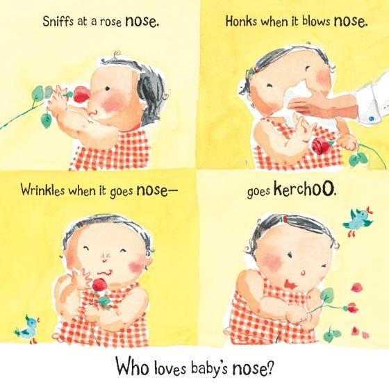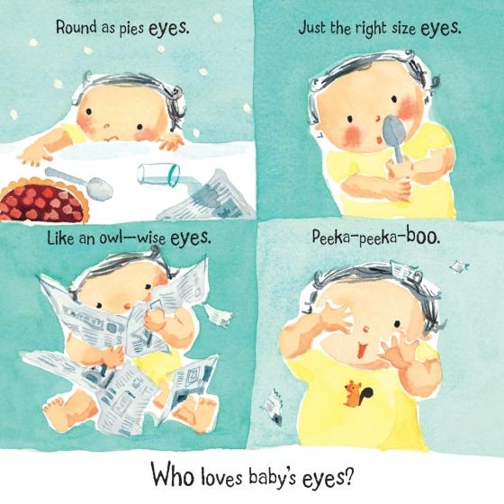 From eyes to ears and legs to toes, there's a lot for baby to discover, and even more for a family to love. Bright, buoyant art, a catchy rhythm and rhyme, and a roly-poly little baby are sure to inspire plenty of giggling and grabbing and feet-in-the-air-ing. Already a hit in hardcover, this is the perfect first board book for every baby-and for every parent who loves that baby to bits.
