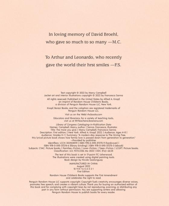 A modern-day response to The Giving Tree, this lyrical picturebook shows how a family passes down love from generation to generation, leaving a legacy of growing both trees and community.Once there was a wide-open field, and a boy who loved his grandmother,