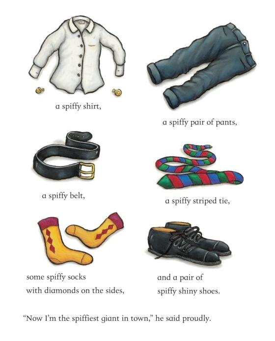 When George the giant spies a shop full of wonderful clothes, he decides to treat himself to a new outfit. He puts on his new shirt, pants, shoes, and tie, and is immediately transformed from the