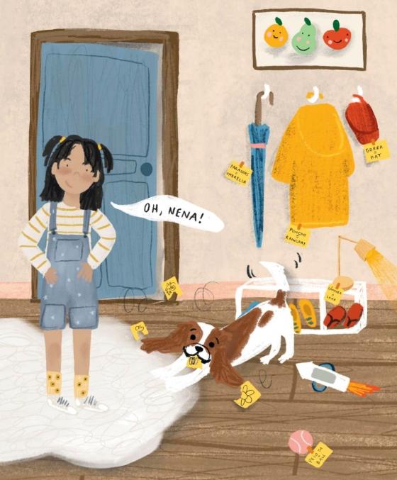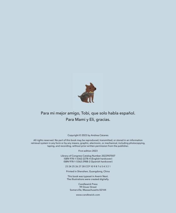 When Aurora came to the United States, she learned to speak English. But her spaniel, Nena, did not. Sweet Nena loves to give besos, and she knows only Spanish. She doesn’t know SIT, but she does know SIÉNTATE. She doesn’t know WAIT, but she does know ESPERA. And while TREAT doesn’t mean anything to Nena, she can certainly sniff out a POSTRE! At the park, Nena may not know what the other dog owners are saying, but she and Aurora will always understand each other just fine. Borrowing from her lived experience, Venezuelan-American author-illustrator Andrea Cáceres offers a gentle, charmingly illustrated ode to love that extends a hand—or a paw—to readers who may feel displaced or are learning a new language themselves.