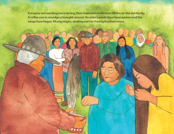 "McKnight (Shoshone-Bannock) captures the emotional depth of each page in her rich, realistic watercolor scenes, while Rose’s earnestly penned narrative is touching, capturing a precious day filled with uncertainty and fear as well as familial love and Indigenous pride . . . A beautiful blend of community action and the bond between an elder and grandchild." —