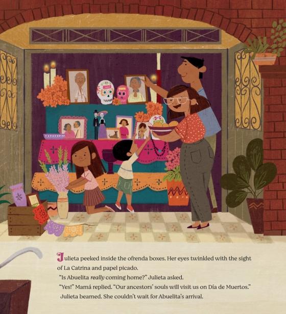 Julieta is eager to honor her Abuelita's spirit on Día de Muertos, but struggles to find the perfect gift. A touching story that celebrates ancestors and teaches that the most meaningful tributes come from the heart illustrated by award-winning Sara Palacios.Julieta is excited for Abuelita's spirit to visit on Día de los Muertos. She is determined to find the perfect gift to honor Abuelita and to show how much she misses her. However, her ideas fail one by one and Julieta grows worried.