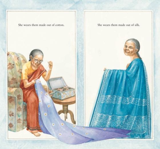 Dadima shares all the wonderful things that saris can do—from becoming an umbrella in a rainstorm to providing a deep pouch to carry seashells. Soon Rupa's own imagination is sparked as she envisions saris protecting her in the scary Gir Jungle, bandaging up an injured knee, and holding a special secret for her and Dadima to share.