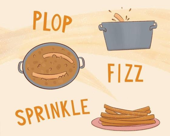 Emi has an idea! Maybe she can make churros after all, with a little help. From Señora Luisa, she can borrow flour. Tomas in 312 has sugar. Marisol in 512 has a piping tip. Soon Emi’s apartment is filled with the scent of fresh churros, new foods, and new friends!