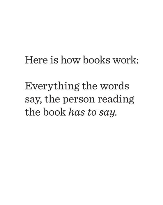 You might think a book with no pictures seems boring and serious. Except . . . here’s how books work. Everything written on the page