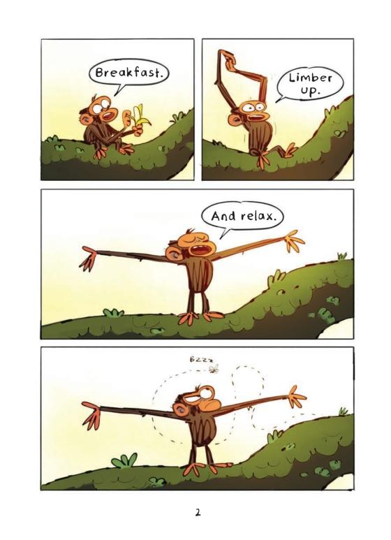 This graphic novel based on the #1 New York Times bestselling Grumpy Monkey is perfect for children who love the original picture books and are ready for the next step. Features hilarious dialogue, multiple panels per page, and a longer storyline to keep kids laughing all the way to the end!It's Wednesday! Which means it's time for Jim Panzee's weekly Wednesday walk. He wakes up, stretches a little, grabs his stress orange, and sets off. Jim's favorite part of the walk is the blissful silence. When he's alone, he can hear all the jungle sounds. Until . . . his best buddy, Norman, decides to join him. And before he knows it, Jim is followed by every animal in the jungle. It's all just too much. Now Jim and his not-so-helpful friends are on a quest across the jungle to find another stress orange before it is too late!