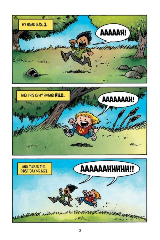 Take off on an action packed adventure with HILO Book 1! Dog Man meets Big Nate in this hilarious New York Times bestselling graphic novel series that kids love!BOOM! CLANG! CRASH! D.J. and Gina are totally ordinary kids. But Hilo isn't! Hilo just fell out of the sky and doesn’t know where he came from, or what he’s doing on Earth. (Or why going to school in only your underwear is a BAD idea!) . . . But UH-OH, what if Hilo wasn’t the only thing to fall to our planet? Can the trio unlock the secrets of Hilo's past? Can Hilo survive a day at school? Find out in HILO-a laugh-out-loud, epic story of friendship! Adventure! (And the occasionaly mutant space robot).