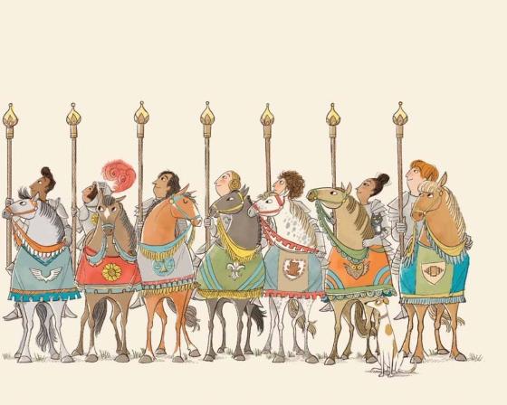 "Colorful cartoon illustrations portray happy encounters between the knights and the ordinary folk, interspersed with hints to the dragon’s whereabouts. . . . For those on a quest for a different take on a holiday tail—oops!—tale."