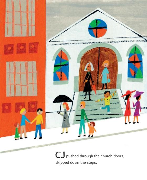 “The sharp illustrations—in bold, and cheerful primaries—get CJ’s restless energy and curious postures exactly right. The voices of CJ and his grandmother carry the story along in subtle point and counterpoint so that at this book’s quiet close you feel like you’ve been listening to a song.” —The Boston Globe