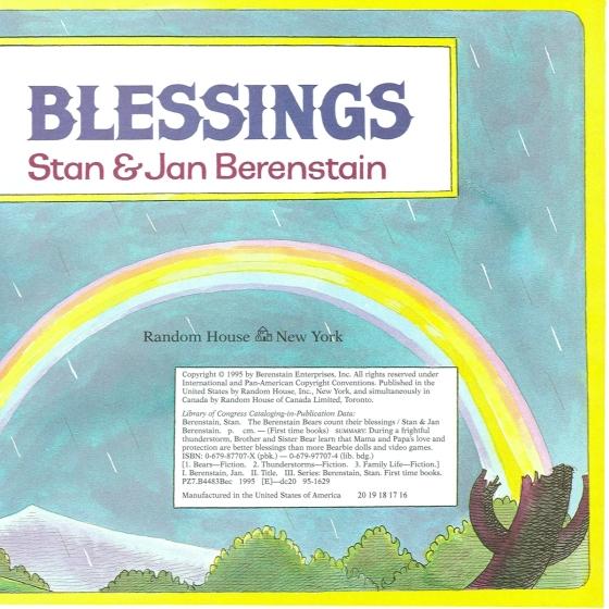 Come for a visit in Bear Country with this classic from Stan and Jan Berenstain. A big storm is rolling through Bear Country! Brother and Sister are scared, but Papa and Mama help the cubs realize that they are all safe and that the whole family should count their blessings. Includes over 50 bonus stickers!