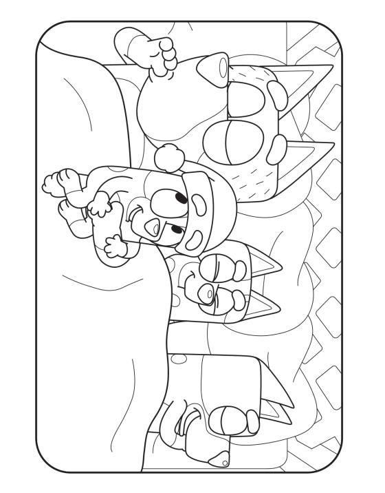 A Christmas coloring book perfect for fans of the award-winning animated series Bluey, as seen on Disney+Color in a game of Veranda Santa, a Christmas swim, and more! This coloring book features more than 60 pages of Bluey and Bingo celebrating Christmas with their friends and family.