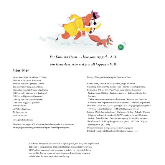 When a mysterious someone steals the town Christmas tree, Detective Cluehound and Sergeant Squirrel are on the case! Will the two sleuths be able to track down the thief in time for the big day?It's Christmas, and Dog Detective Cluehound and Sergeant Squirrel are decorating their neighboorhood when a very merry someone grabs their Christmas tree and quickly takes off. STOP THAT . . . SANTA!