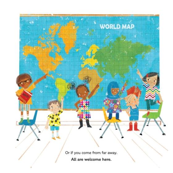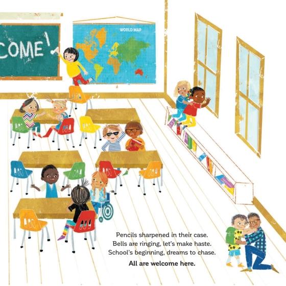 “Celebrate a school community as a great common ground where families of all kinds connect and share in their children’s educational journey…. the book’s refrain of “All are welcome here” feels both