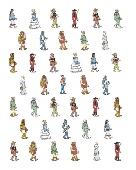 Martin Handford spent much of his childhood drawing, and his earliest influences were cinema epics and playing with toy soldiers. After art college, he began working as a freelance illustrator, specializing in drawing crowd scenes for numerous clients. He now gathers inspiration from a huge variety of sources: films, visiting museums and art galleries, reading comics and books, and collecting ephemera and trivia. He is fascinated by crowds and is attracted to their vibes, patterns, and details—especially humor. Gradually, from all this meticulous research, the inspiration for a picture emerges, which he embellishes with his own ideas to create astonishing scenes. Each picture takes many months to draw. “As I work my way through a picture, I add Waldo when I come to what I feel is a good place to hide him," he explains.