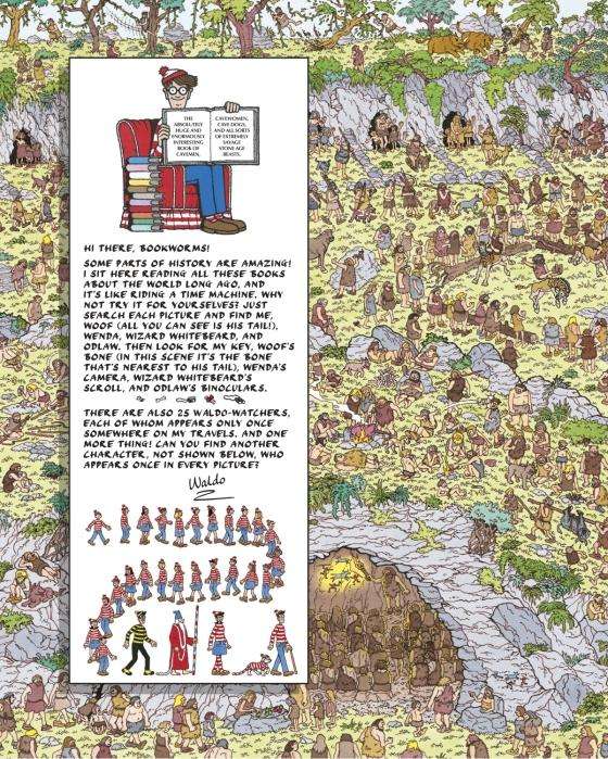 Where’s Waldo? Enjoying a refreshed cover plus two new pages of games and searches!Waldo and his friends Wenda, Woof, Wizard Whitebeard, and Odlaw are cropping up in scenes throughout history, appearing alongside cavemen, gladiators, gold miners, and more. Waldo even gets lost in the future!