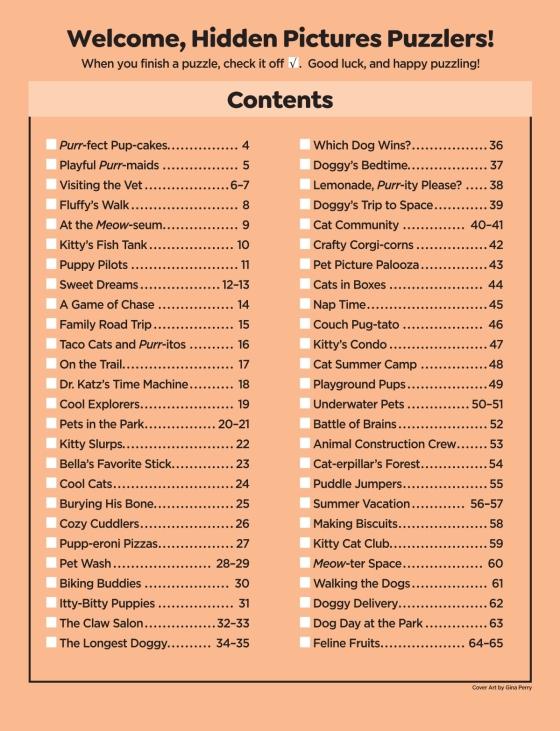 Hidden Pictures scenes so cute you’ll want to squeeze them! Find adorable kittens and puppies while you solve, color and laugh your way through these fun puzzles.With over 1,800 objects to find across 144 pages, there’s almost no end to the fun you’ll have with this activity book for kids. Jump from cat puzzle to dog puzzle to find cute friends and playful characters. Color them in or circle each of the hidden objects, there are so many ways to enjoy these fun puzzles.