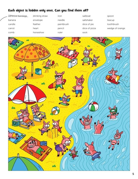 Every puzzle solved will boost kids’ confidence and encourage them to take on new challenges. Kids (and grown-ups, too) will need to keep their eyes peeled searching through hilarious scenes like sloths playing ping pong, dogs enjoying a fiesta and a fishy carnival. There are both full-color and classic black-and-white brain games to solve, each one created to bring meaningful benefits and maximum fun!