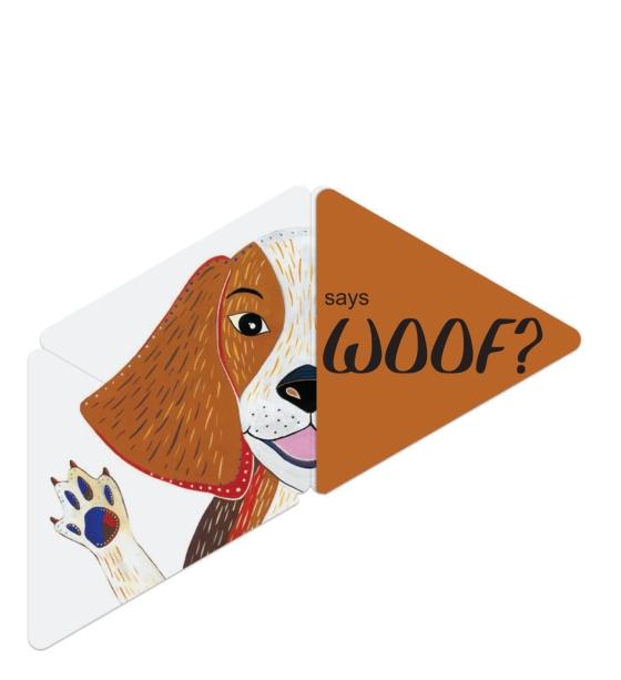 Publishers Weekly"This triangular board book is engagingly designed to fit in little hands. Each page turn offers a diamond-shaped double-page spread that asks youngsters to guess an animal based on the sound it makes. “Who says meow?” queries a cheerful blue spread. And here’s where it gets fun: the answer is found by unfolding the pages, transforming the spread into a whiskered cat’s face, with perky triangle ears. The pattern repeats to reveal 11 vividly painted animals by book’s end, including a turkey, snake, pig, sheep, and peacock. Sturdily constructed, this clever book will withstand grabbing and multiple reading sessions."—