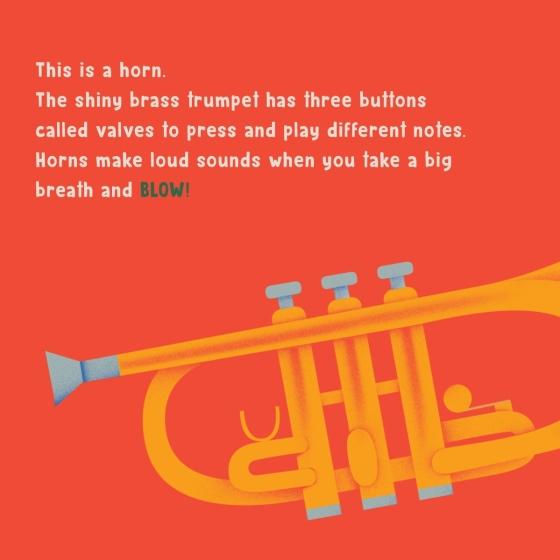 "This first introduction to horns is a great way to teach young readers about musical instruments. The playful language and colorful illustrations make this a fun read for little ones and encourages them to find horns all around them!" — KIDS Bookshelf