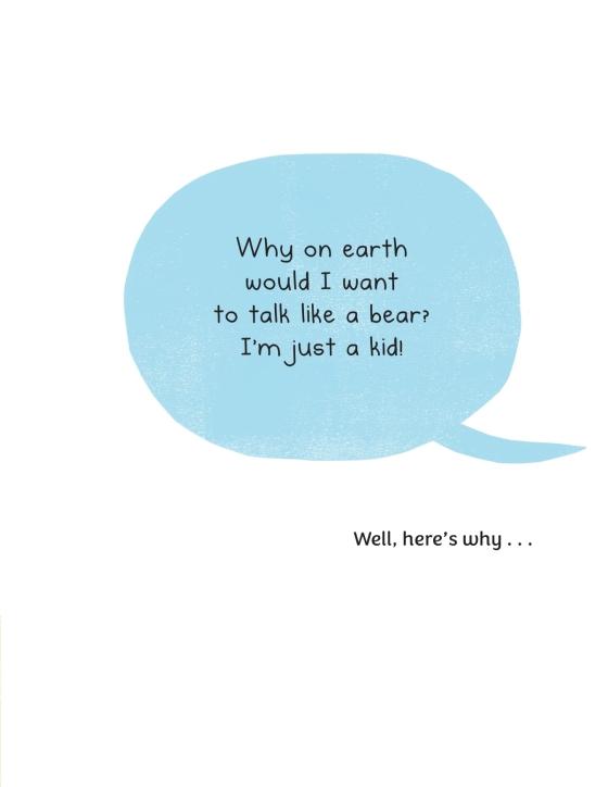 How to Talk Like a Bear] will have readers giggling with delight as they roar at varying volumes—each roar resulting in snappy comebacks from the bear. It’s a book designed for reading aloud to large groups, and the illustrations support the text perfectly with reaction shots that will remain humorous even after several reads. . . while the story will shine brightest when read with groups, the ending makes it equally appropriate for an evening read before starting a pre-bedtime ritual. . . A laugh-out-loud take on the challenges of making ourselves understood."--