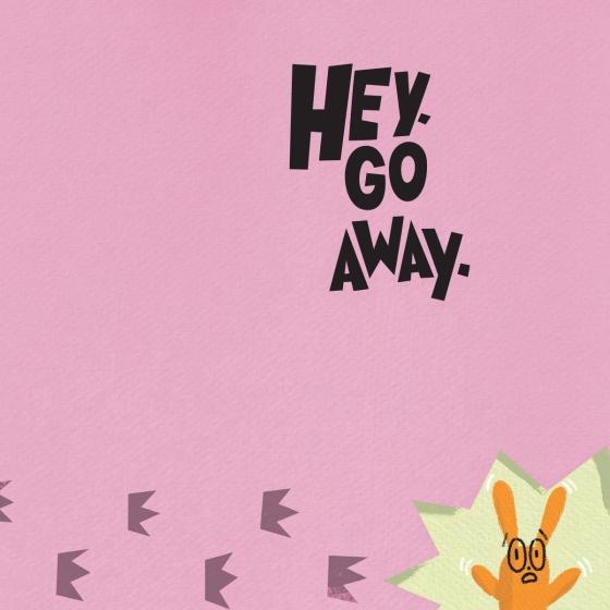 "A monster’s reign of terror begins even before the title page: “HEY. GO AWAY.” Turn to the title page and there the monster waits, blue-skinned and angry-eyed: “I WILL CHOMP YOU!” As the reader turns the pages, the monster’s direct-address threats increase: “If you turn any more pages…I WILL CHOMP YOU, BUSTER!” Another page turn and the monster is even angrier: “NOW QUIT IT!” Until finally, “HEY! I’m warning you! You’ve been officially WARNED! CHOMP!” Unfortunately for the monster, the reader is just too fast, and its chomp misses the mark. The monster proceeds to bite, yell, and barrel its way through the pages, repeatedly trying to halt-by-chomping the reader from reaching its secret hidden in the back pages of the book (