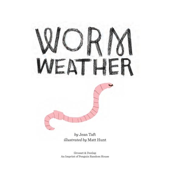 Jean Taft is a New England writer who loves weather. She grew up in Vermont and now lives in Rhode Island with her husband, two children, and one very happy dog. Jean is a member of SCBWI and the Middletown Authors Circle. Worm Weather is her first published picture book.