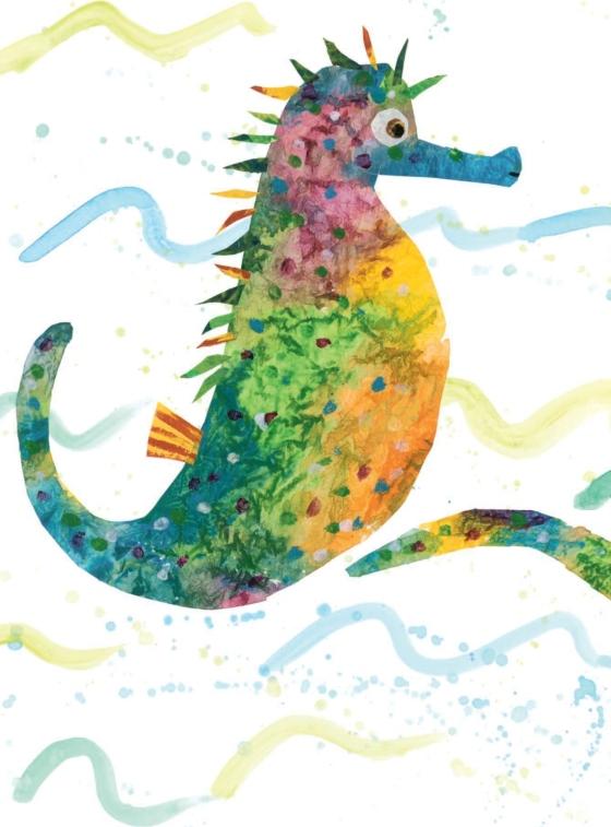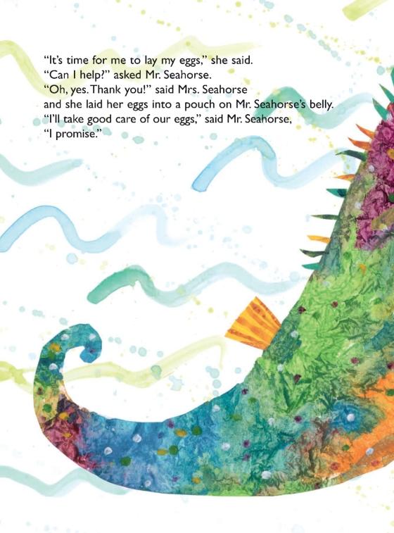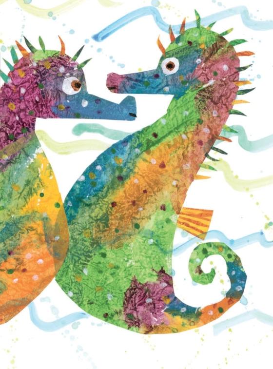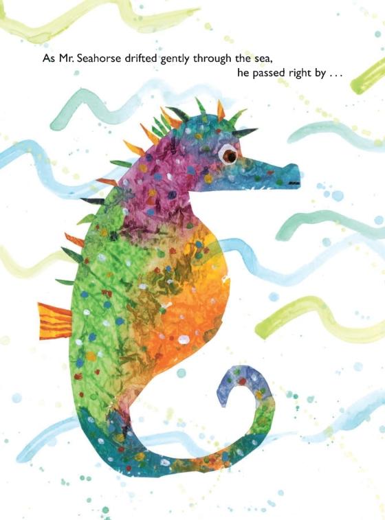 Astonishingly beautiful collage illustrations and a story that introduces the wonders of aquatic life . . . and some very special daddies. A "hide and seek" feature with acetate overlays adds a colorful surprise to this Eric Carle classic.When Mrs. Seahorse lays her eggs, she does it on Mr. Seahorse's belly! While he swims waiting for the eggs to hatch, he meets some other underwater fathers caring for their babies. Clear "peek-a-boo" pages offer an ocean of fun opportunities for young readers to feel like they're under the sea!