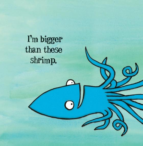 When a giant squid takes inventory of all of the creatures in the ocean, he realizes that he's way bigger than most of them! Of course, there are bigger things lurking around . . . but maybe this giant squid with a giant touch of hubris doesn't really care?