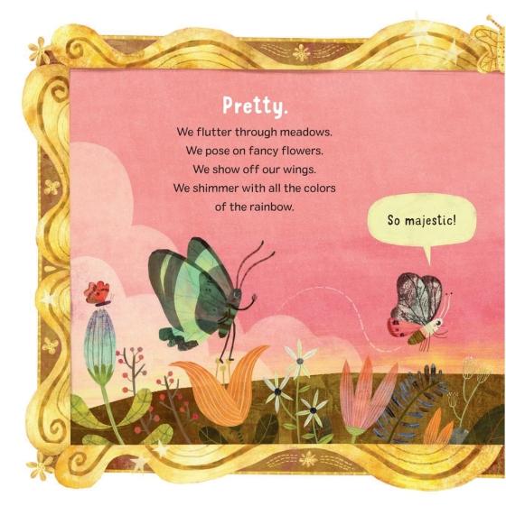 Warning -- this book contains top-secret information about butterflies! Prepare to be shocked and grossed out by this hilarious and totally true picture book introduction to a fascinating insect.Butterflies are beautiful and quiet and gentle and sparkly . . . but that's not the whole truth. Butterflies can be GROSS. And one butterfly in particular is here to let everyone know! Talking directly to the reader, a monarch butterfly reveals how its kind is so much more than what we think. Did you know some butterflies enjoy feasting on dead animals, rotten fruit, tears and even poop? Some butterflies are loud, like the Cracker butterfly. Some are stinky -- the smell scares predators away. Butterflies can be sneaky, like the ones who pretend to be ants to get free babysitting.