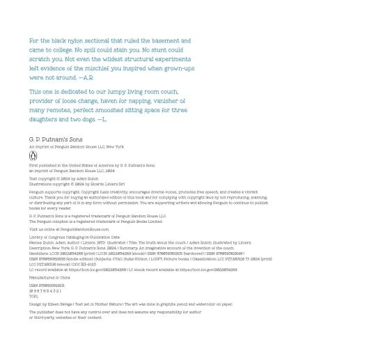 Dragons Love Tacos, but this time, you’re learning all about a couch—and all the many conspiracy theories that go into it. It’s equal parts a book about how misinformation is spread and just a fun, silly book about a piece of furniture." —