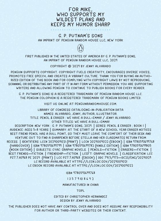 It's the start of a new school year, and Pencil and Eraser are ready for anything. Except when Pencil notices her point has dulled. That's never happened before and she feels...pointless. Stella can't write with a dull pencil. So what can Pencil do?
