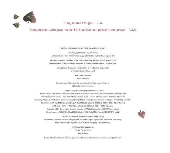 With a gentle, poignant text by Jen Arena, and colorful, detailed illustrations by Rahele Jomepour Bell, this unforgettable story shows the power of simple acts of kindness and the potential to change other people’s days for the better.