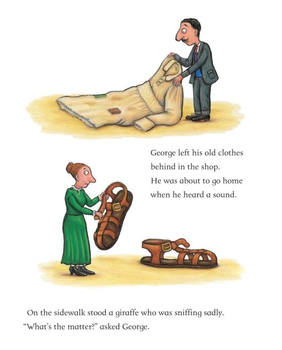 spiffiest giant in town. But on his way home, George runs into various animals who need his help. And little by little, George finds himself giving away all his new purchases.
