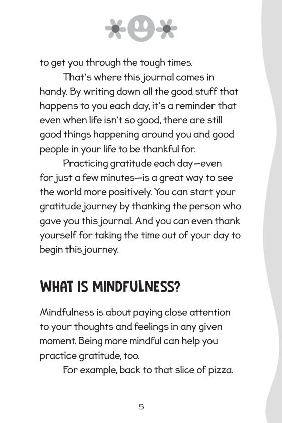 The perfect first journal for kids to practice positive thinking through mindfulness and gratitude.Complete with motivational prompts and daily acts of gratitude, this thoughtfully designed journal encourages kids to give thanks and see their world through a positive lens.