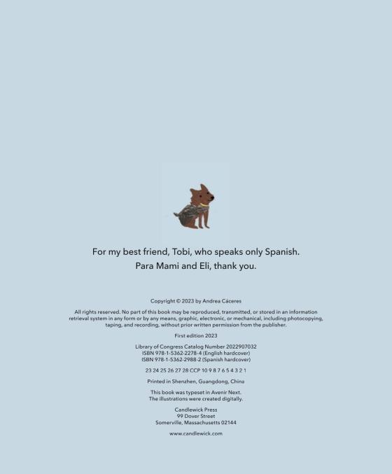 A young bilingual immigrant meanders through her city park, translating for her beloved dog, in a heartwarming picture book debut.When Aurora came to the United States, she learned to speak English. But her spaniel, Nena, did not. Sweet Nena loves to give besos, and she knows only Spanish. She doesn’t know SIT, but she does know SIÉNTATE. She doesn’t know WAIT, but she does know ESPERA. And while TREAT doesn’t mean anything to Nena, she can certainly sniff out a POSTRE! At the park, Nena may not know what the other dog owners are saying, but she and Aurora will always understand each other just fine. Borrowing from her lived experience, Venezuelan-American author-illustrator Andrea Cáceres offers a gentle, charmingly illustrated ode to love that extends a hand—or a paw—to readers who may feel displaced or are learning a new language themselves.