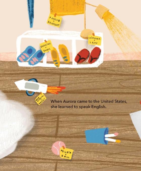 The picture book is as sweet as it is simple, following Aurora around her new city as she demonstrates the words Nena knows in Spanish. . . this makes an excellent addition for young readers practicing reading, and even for those newly learning English or picking up Spanish terms. The speech bubbles support interactive reading with an adult, and the background images offer an opportunity to explore Aurora’s community more deeply in a preschool or kindergarten storytime.