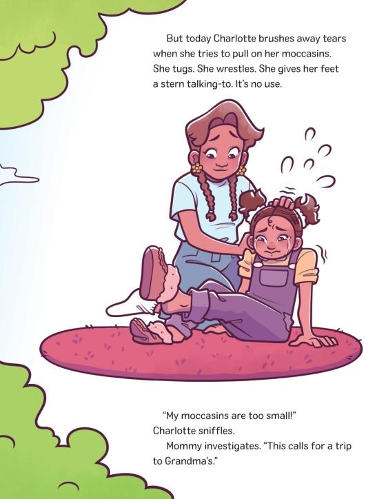 Charlotte has outgrown her moccasins! Still, there's nothing a trip to Grandma's can't fix in this heartwarming intergenerational story.