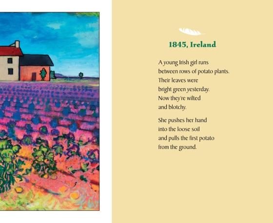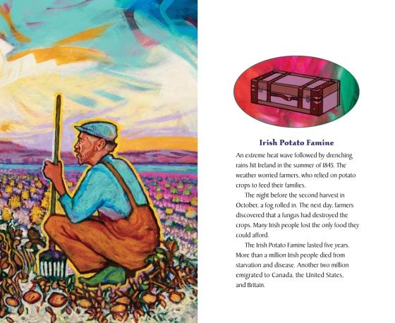 The book offers additional information in the backmatter, including facts about the Trail of Tears and the Irish Potato Famine, as well as a timeline of events. While