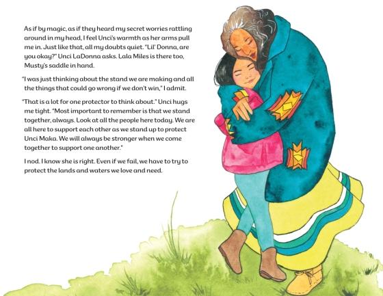 "Indigenous and Asian author Rose melds a child’s journey with extended information on the Sacred Stone Camp and Water Protectors. Luminescent graphite and watercolor illustrations from McKnight, an enrolled member of the Shoshone-Bannock Tribes, trace the journey in vivid greens and blues." —