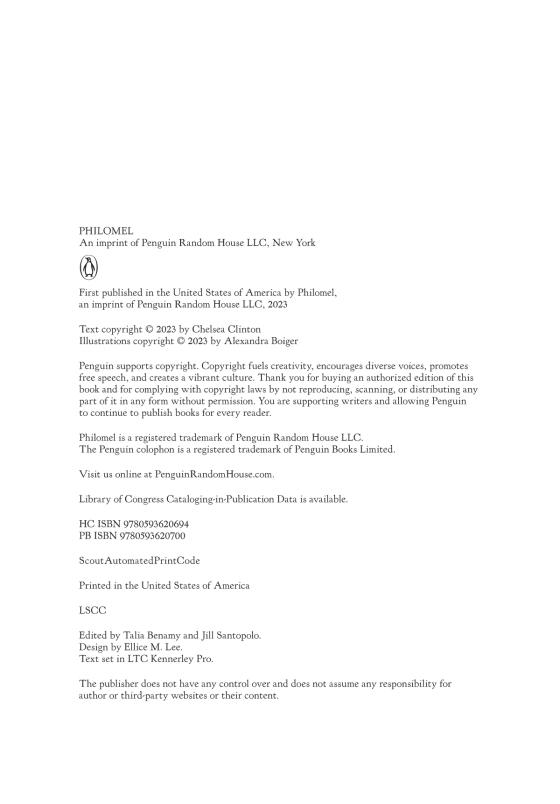 Alexandra Boiger (alexandraboiger.com) has illustrated nearly twenty picture books, including the She Persisted series by by Chelsea Clinton; the popular Tallulah series by Marilyn Singer; and the Max and Marla books, which she also wrote. Originally from Munich, Germany, she now lives outside of San Francisco, California, with her husband, Andrea; daughter, Vanessa; and two cats, Luiso and Winter. You can follow Alexandra on Instagram @alexandra_boiger.