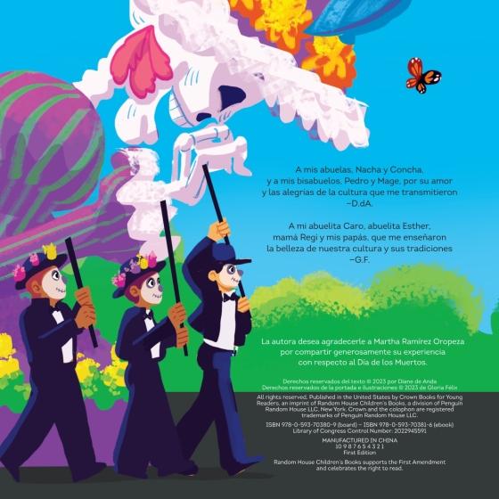 Emotivas ilustraciones recrean el espíritu festivo y conmovedor de esta tradición, en la que todos decoran su casa, se visten para un desfile de disfraces, construyen un altar, cocinan tamales y bocadillos, y hacen muchas cosas más. Al final, el libro ofrece datos adicionales sobre el Día de los Muertos para reforzar el significado de todas las costumbres tradicionales representadas.