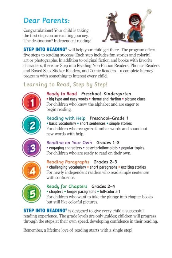 A Step 3 Step into Reading leveled reader based on Disney and Pixar Coco! Despite his family's baffling generations-old ban on music, Miguel dreams of becoming an accomplished musician like his idol, Ernesto de la Cruz. Desperate to prove his talent, Miguel finds himself in the stunning and colorful Land of the Dead following a mysterious chain of events. Along the way, he meets charming trickster Héctor and together, they set off on an extraordinary journey to unlock the real story behind Miguel's family history. Children ages 4 to 6 will love this Step 3 Step into Reading leveled reader based on the film.