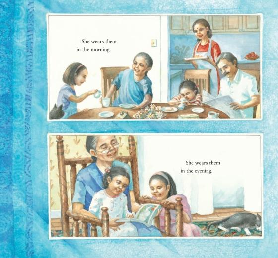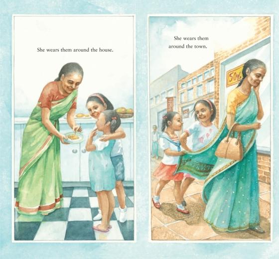 Dadima shares all the wonderful things that saris can do—from becoming an umbrella in a rainstorm to providing a deep pouch to carry seashells. Soon Rupa's own imagination is sparked as she envisions saris protecting her in the scary Gir Jungle, bandaging up an injured knee, and holding a special secret for her and Dadima to share.