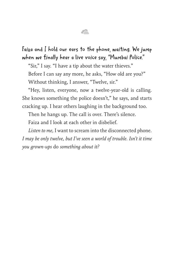 The Bulletin of the Center for Children's Books"The kids are smart and savvy, and their friendship is strong, so when a series of calamities adds layers of danger, they support one another through the worst of it. This fast-paced adventure story includes a vivid portrayal of life in a place where income disparities are glaring, education is a hard-won privilege, and a lot hangs in the balance when you take a risk. The main plot involves the kids’ accidental encounter with the water mafia, thieves who steal and sell fresh water illegally. This is a real and perilous fact in Mumbai and . . . is convincingly portrayed. There’s a lot to learn about and to like here: the characters, the humor, the emotional roller-coaster ride, and more." —
