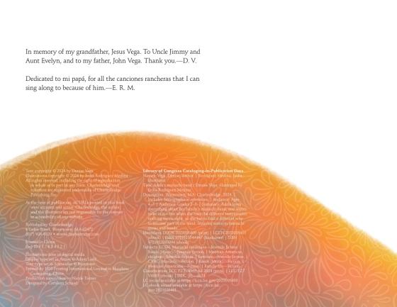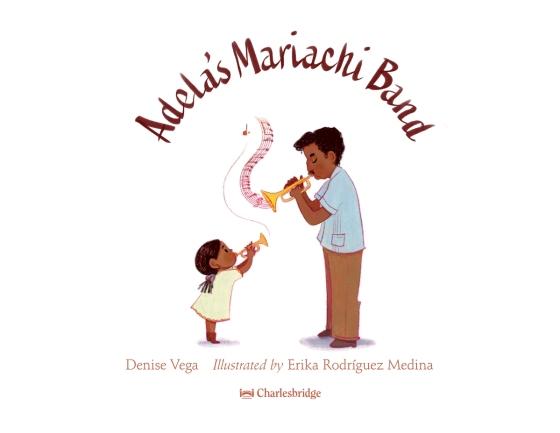 Adela loves everything about her family’s mariachi band (“how the music skips and bounces.... how her family dances and claps”)—except “the fact that she isn’t in it.” But her early attempts at playing various instruments and joining the dancers quickly reveal that becoming proficient will take a long time (“When Papá plays la trompeta, big, beautiful sounds burst out.... When Adela tries it, a small, fizzly sound dribbles out,” Vega writes). Frustrated with her attempts, Adela makes a drawing of beloved mariachi elements that presages her own participation. Rodriguez Medina’s warm-toned digital illustrations offer texture and depth to a story that conveys one child’s early attempts at being part of something she loves. Characters are portrayed with various skin tones. An author’s note and sources conclude. Ages 4–7.