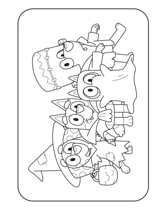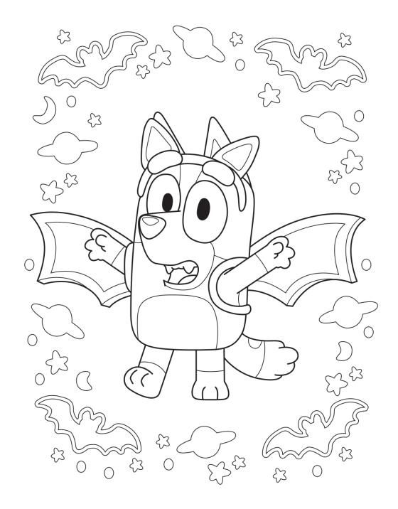 A scarily fun coloring book perfect for fans of the wildly successful animated series Bluey, as seen on Disney+Color in Bluey and Bingo going trick-or-treating, to a Halloween party, and much more! This coloring book has 32 pages packed with Bluey, Bingo, and all her friends and family celebrating the most frighteningly fun time of the year.