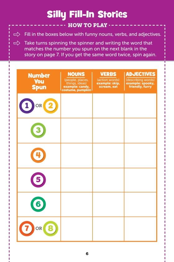 Take this spooky activity book for a spin! With a built-in spinner and over 20 Halloween-themed games, this travel-sized book has everything kids 6-9 need for hours of entertainment.Surrounded by adorable Halloween illustrations, the attached spinner cleverly folds out to work with every game. The games in this 32-page book include activities for one and for multiple players, including Hidden Pictures puzzles, fill-in story challenges, silly brainteaser games and more. Each activity is expertly created by the childhood experts at Highlights to help kids develop their concentration, attention to detail and other important school skills. Plus, playing games is a great way for children to build social emotional skills.